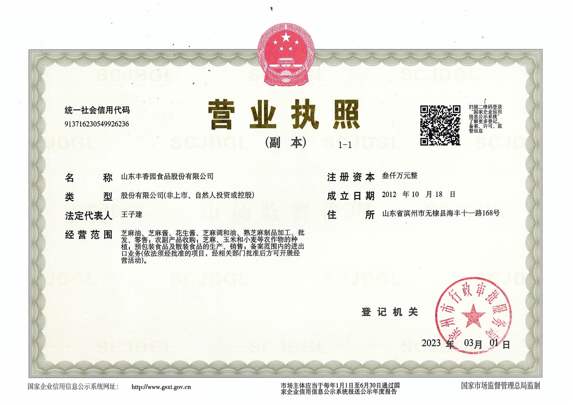 山東豐香園食品股份有限公司位于山東省濱州市無棣縣海豐十一路168號(hào),公司擁有員工50多人,年銷售收入6000多萬元,是華北地區(qū)最大的純正芝麻香油、芝麻食品定制代加工生產(chǎn)、出口基地。